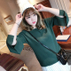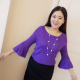 大码女装圆领喇叭袖肉卷大码纯色七分套头打底-针织喇叭口5色衫