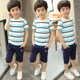 2017新款男童夏装短袖套装童装中大童T恤条纹上衣短裤儿童两件套