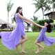 儿童装女童连衣裙夏2017新款紫色公主裙儿童雪纺裙燕尾裙子亲子装