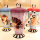 仟度 彩绘陶瓷杯 动物卡通杯 时尚创意带盖勺马克杯 咖啡牛奶杯子