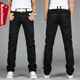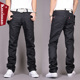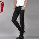 Kuziman春秋黑色男士牛仔裤男春秋款直筒修身韩版弹力男裤小脚裤