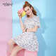 收腰印花连衣裙女2017夏季新款韩版时尚清新甜美修身显瘦a字裙子
