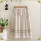 日系森女系复古名族风刺绣下摆蕾丝边松紧腰棉麻半身裙长裙子女春