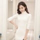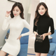 2016秋冬季修身加厚套头高领毛衣女士中长款针织连衣裙包臀打底衫