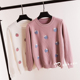2016新款秋冬宽松打底衫线衣韩版甜美小菊花柔软针织衫毛衣外套女