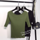 2017春装韩版一字领拼色短款针织衫修身高腰中袖t恤上衣打底衫女