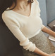 韩版打底衫毛衣t恤女装V领针织衫长袖修身小衫短款学生秋冬上衣潮
