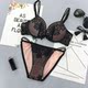 可用插片 法国超薄蕾丝性感深V大码文胸比基尼女士内衣套装D罩杯