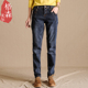 格森美尔刺绣牛仔裤女秋绣花长裤显瘦小脚裤深色抓纹宽松哈伦裤子