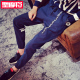 春季新款修身弹力牛仔裤男士加大码小脚日系青年韩版潮男束脚裤子