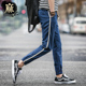 春夏季九分裤男士牛仔裤英伦修身款弹力青少年小脚裤男9分裤子潮
