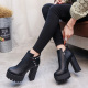 2017韩版新款时尚超高跟短靴马丁靴厚底防水台铆钉女鞋高跟鞋裸靴
