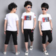 儿童装潮男童夏装中大童男孩小学生夏天短袖纯棉t恤7分裤两件套装