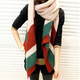 特价韩国秋冬女款彩色毛线条纹拼接围巾彩格拼接超长围巾披肩包邮