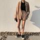 nini 限量!春季新款乱麻长袖休闲西装外套+打底短裤套装女