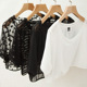 胖妹妹夏装女宽松大码胖mm韩版圆领短袖镂空网纱透视打底衫7932