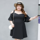 大码女装夏2017新款微弹露肩V领喇叭短袖黑色显瘦胖mm连衣裙02026