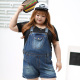 大码女装200斤潮胖mm夏装新款洗水牛仔背带连体裤吊带短裤1002