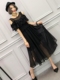 欧洲站美丽阁2017夏季新款女露肩荷叶边中长款时尚气质雪纺连衣裙