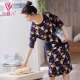 2017纯棉睡裙女夏性感时尚碎花长袖中裙外穿秋天睡衣家居服薄新款