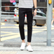 春夏装潮男裤子韩版牛仔裤男修身小脚裤青少年九分裤紧身黑色长裤