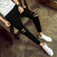 裤子男韩版潮流修身小脚显瘦学生黑色牛仔裤男破洞裤男士九分裤潮