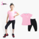 舞美人新款儿童舞蹈服短袖上衣七分哈伦裤分体套装夏季女童练功服