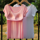 无钢圈胸垫一体短袖上衣 罩杯一体免穿文胸修身T恤衫睡衣夏背心