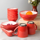 【玉泉】 中国红纯色4人用餐具套装碗碟 中式结婚送礼红色碗盘16