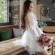 蕾丝连衣裙粉红大布娃娃秋修身雪纺网纱蓬蓬白色长袖连衣裙