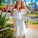 白色连衣裙粉红大布娃娃夏季宽松纱裙A字裙性感女裙子