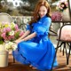 雪纺连衣裙夏粉红大布娃娃淑女修身收腰蓬蓬裙女纱裙中袖裙子