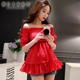 一字领上衣女夏粉红大布娃娃韩版时尚女装红色性感短袖露肩衬衫