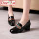 Cham.f.e春季布洛克鞋圆头中口单鞋女 2017真皮中跟鞋女鞋子141G