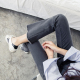 春季韩国毛边高腰九分微喇叭牛仔裤女显瘦灰色流苏阔腿裤修身弹力