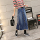 韩国新款牛仔裙女半身裙宽松毛边拼接中长款裙子大码a字裙女长裙