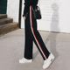 春夏薄款侧边条纹运动裤女阔腿休闲裤直筒长裤加长学生宽松校服裤
