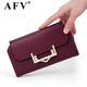 AFV淑女款钱包长款手拿包牛皮搭扣大容量钱夹潮欧美2017新款皮夹