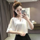 春夏季新款韩范荷叶边网纱拼接短袖雪纺衫打底小衫显瘦喇叭袖上衣