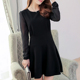 漫娜儿2017春季新款韩版长袖连衣裙女显瘦气质甜美大码打底裙子