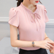 漫娜儿2017春夏装新款韩范甜美短袖雪纺衬衫女装白色时尚衬衣上衣