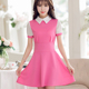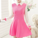 漫娜儿2017春装新品韩版女装甜美娃娃领打底裙子修身长袖连衣裙女