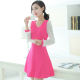 漫娜儿2017春季新款雪纺长袖收腰修身小香风拼接打底裙子连衣裙女