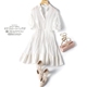 胖丁 青春减龄款~波浪边翻领 侧边抽绳收腰灯笼袖衬衫裙#