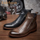 爱得堡英伦时尚高帮拉链马丁靴男复古擦色休闲皮靴潮流短靴男
