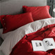 出口简约欧式婚庆四件套大红灰色拼接纯色素色长绒棉贡缎床上用品