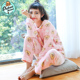 清新夏天睡裙女纯棉长袖家居服日系可爱印花中长款大码孕妇睡衣