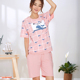 夏季短袖纯棉睡衣女士可爱卡通圆领套装韩版新款休闲可外穿家居服
