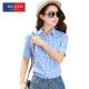 聚布里奥索2016新款女装夏装女短袖衬衫全纯棉格子百搭衬衣韩版