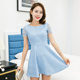 2016夏季新款时尚女装镂空短袖蕾丝连衣裙韩版修身显瘦纯色中裙子